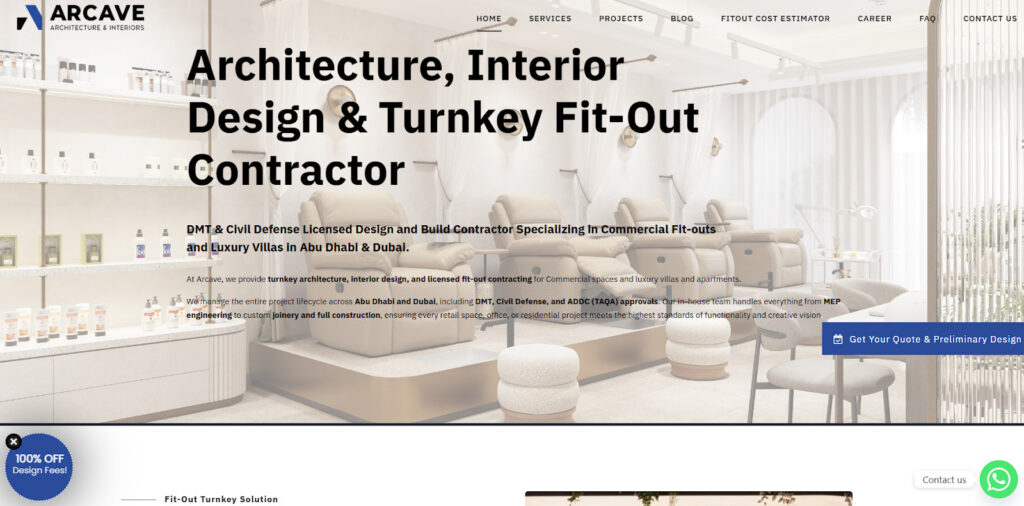 - Arcave Architecture: Best for villa owners and commercial clients in Abu Dhabi who want architectural design, interior fit-out, and construction handled by a locally headquartered firm with DMT approval expertise.