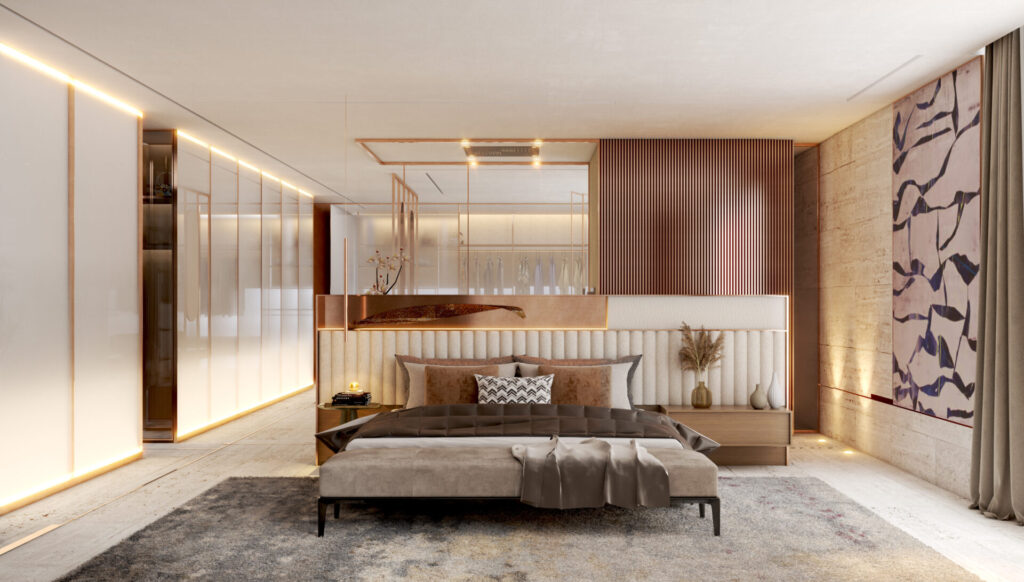 Clean silhouettes and unadorned, geometric forms are key when choosing furniture for a contemporary villa. Opt for sleek sofas, armchairs, and beds in solid colors or neutral hues. Mix in some mid-century modern iconic pieces. Add form and function with modular storage pieces. Avoid heavily carved wood or ornate detailing. Blending form and function, our architecture and interior design firm in Dubai can craft modern spaces tailored to your unique lifestyle.