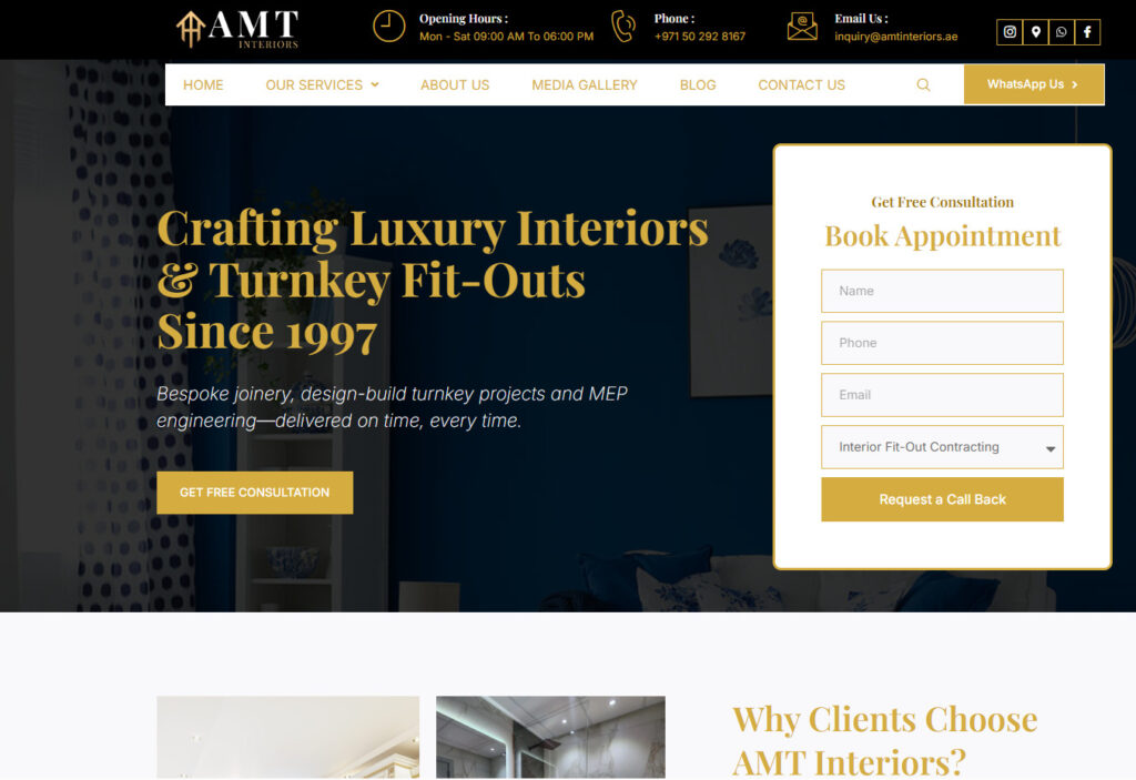 AMT Interiors has been operating in the UAE since 1997, bringing over 28 years of experience to residential and commercial renovation projects.