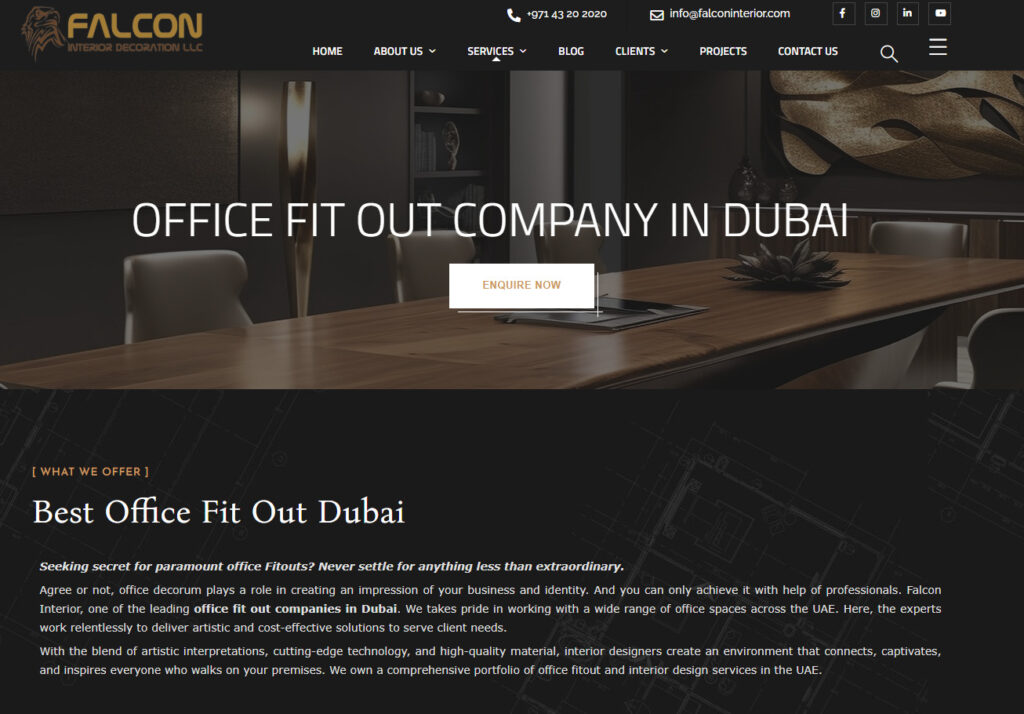 Falcon Interior Decoration LLC is a Dubai-based office fit out company specializing in commercial workplaces and office interior environments across the UAE.
