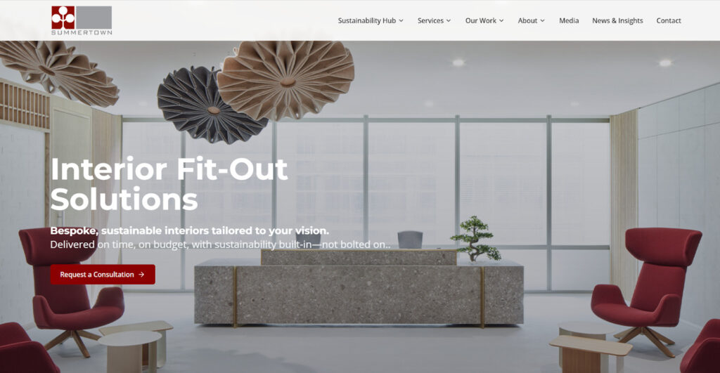 - Summertown Interiors: Best for sustainable, high-performance office fit outs that prioritize employee well-being, environmental responsibility, and operational efficiency.