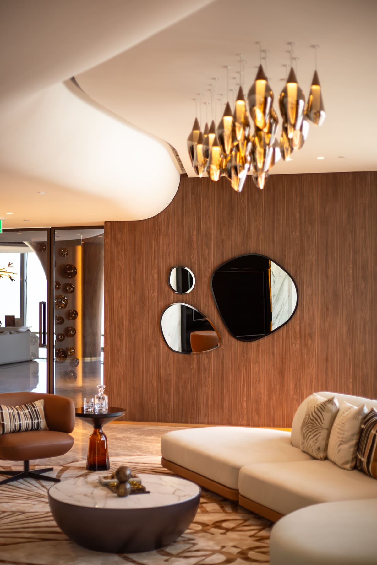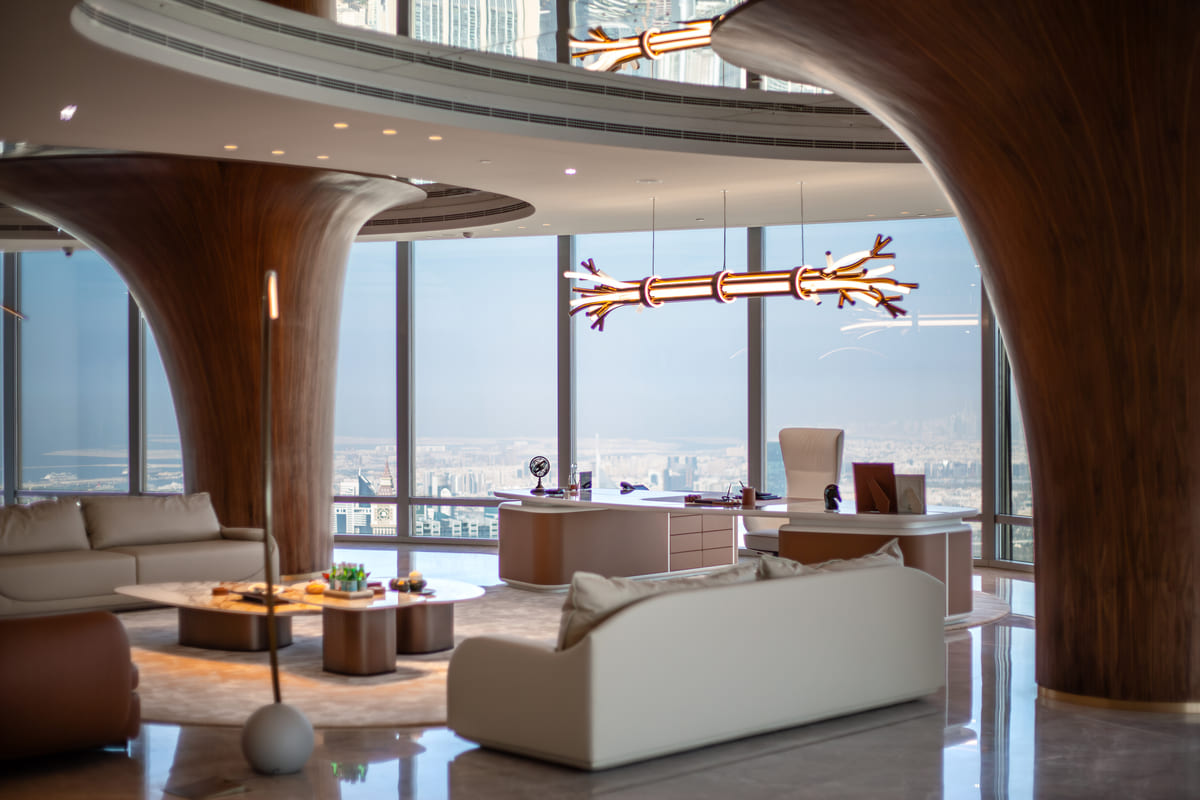 Located in one of Dubai’s most iconic landmarks, Burj115 was envisioned as a premium office space that reflects both status and functionality. Spanning 10,000 square feet, the design brings together sculptural architectural forms, warm timber finishes, soft neutral tones, and bespoke furnishings to create a workplace that is polished, welcoming, and distinctly memorable.