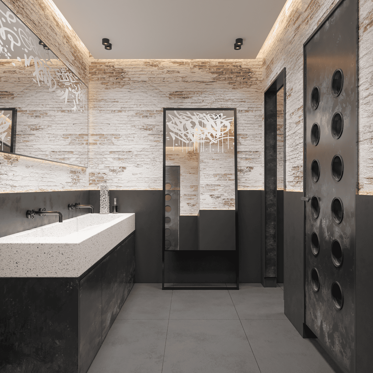 Another important challenge was balancing the industrial character of the material palette with a sense of warmth, elegance, and exclusivity. The design had to feel contemporary and artistic, yet remain comfortable, flexible, and inviting for a wide range of users.