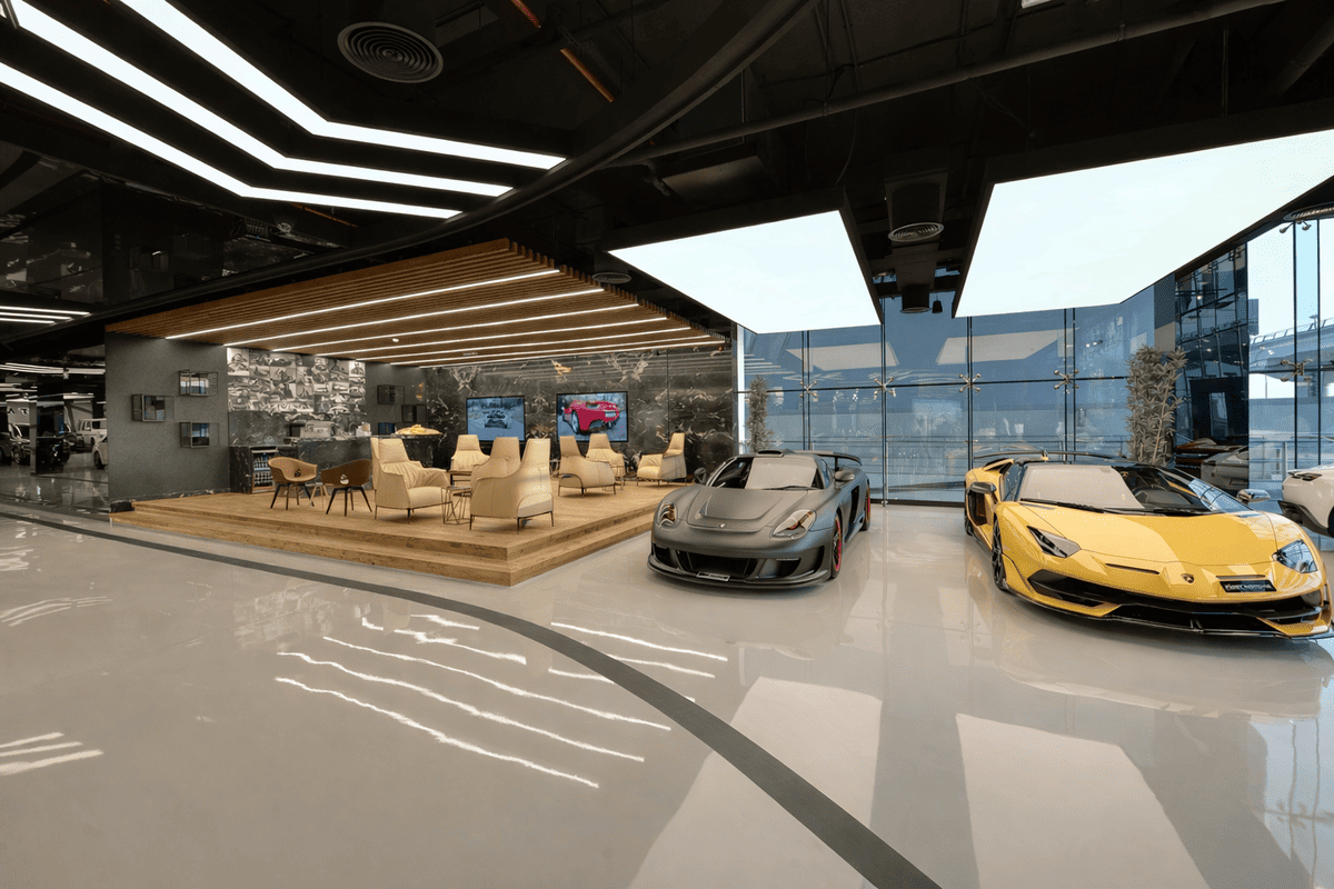 The primary challenge was to create a showroom environment that could accommodate a wide variety of luxury and performance vehicles while maintaining a strong and unified design language throughout. The space needed to feel iconic and memorable, yet remain practical in terms of circulation, visibility, and day-to-day operation.
