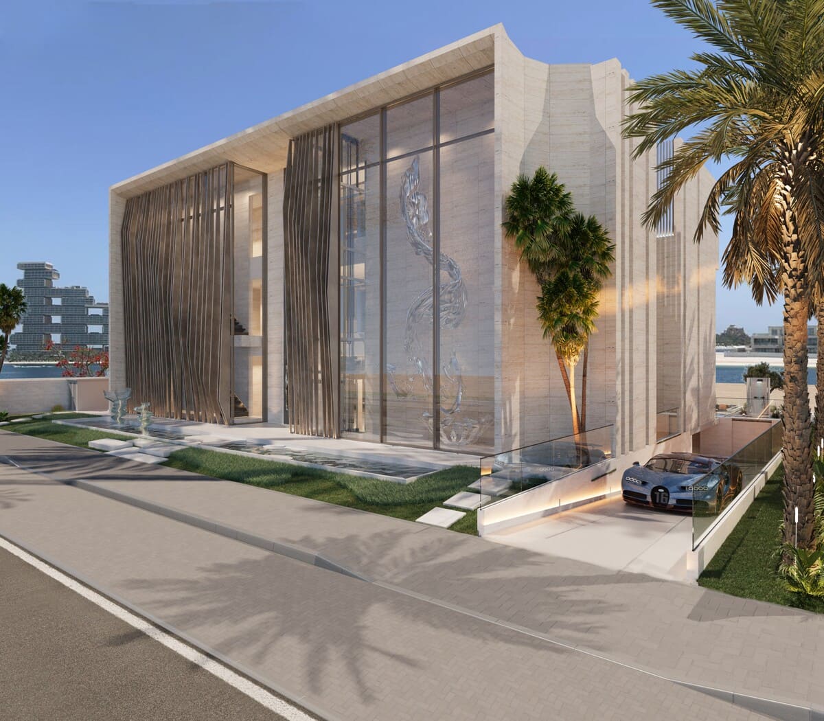 The result is a contemporary Palm Jumeirah villa envisioned as a luminous waterfront sanctuary — one where architecture, interiors, and landscape are united through a shared language of light, openness, and sculptural refinement. Every element of the concept supports a home that feels expansive yet calm, luxurious yet controlled, and visually memorable without excess.
