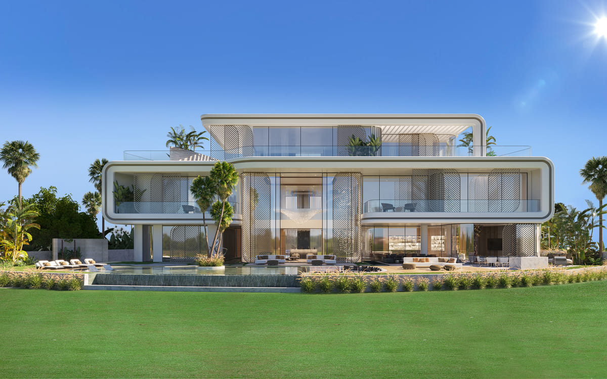 Our approach was to treat the villa as a complete sensory experience. The architecture was developed with soft, fluid forms and strong symmetry, giving the exterior a recognizable identity that feels contemporary, elegant, and expressive. Rounded framing elements, expansive glazing, layered terraces, and sculpted landscape gestures all work together to give the house a distinctive silhouette and a refined resort-like presence.